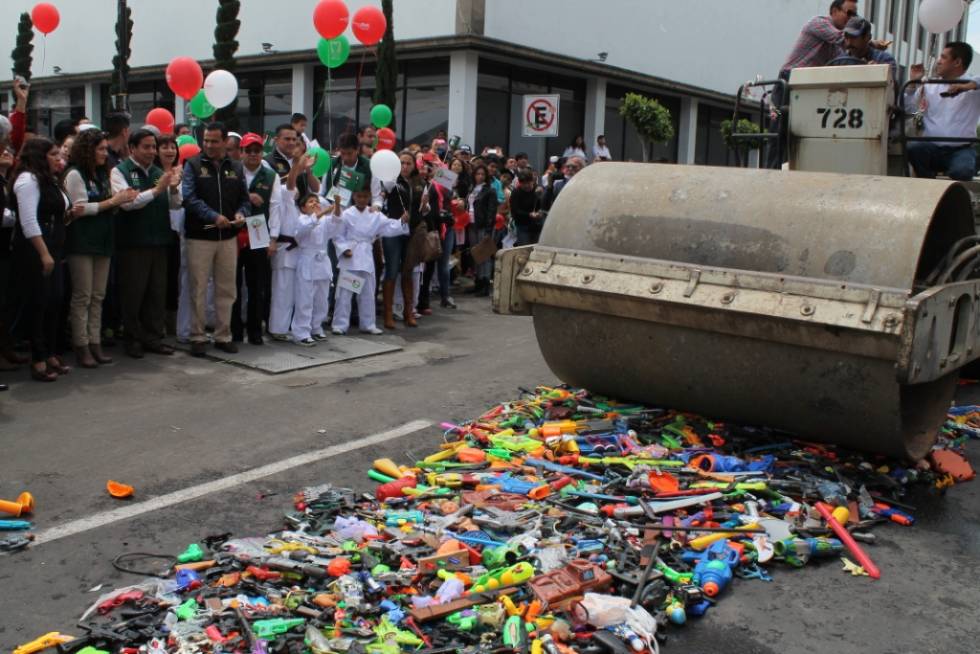 Como símbolo para proclamar un municipio de paz, en Ecatepec fueron destruidos alrededor de 8 mil juguetes bélicos canjeados por niños durante las nueve ferias culturales organizadas a través del Programa Nacional de Prevención del Delito (Pronapred), con el objetivo de atender factores de riesgo y de protección vinculados a la violencia y la delincuencia.