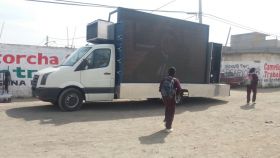 Como parte de las actividades para difundir el evento histórico del 22 aniversario del Movimiento Antorchista en Ecatepec, en colonias como Luis Donaldo Colosio, Potrero del Rey y Laguna de Chiconautla, pantallas circulan en las principales avenidas en las que se invita a los habitantes a que sean parte de la celebrac
