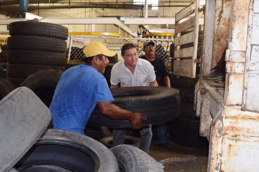 Durante el operativo, que se realizó hoy, el gerente de producción de una vulcanizadora, Javier Heredia, dijo que este programa implementado por el Gobierno de Acapulco ayuda a las empresas y al entorno ecológico, además de que previene la reproducción de mosquitos.