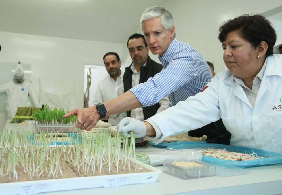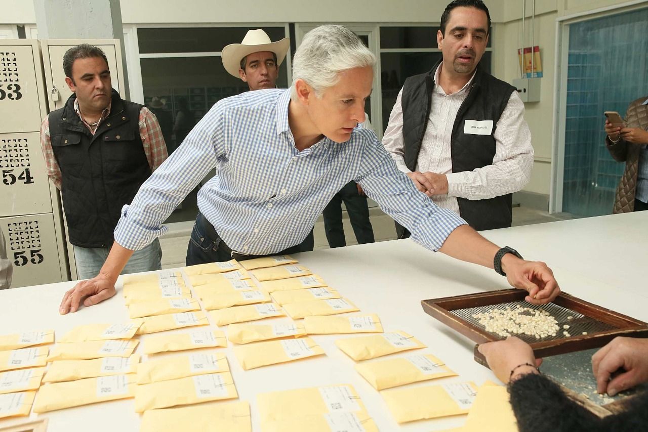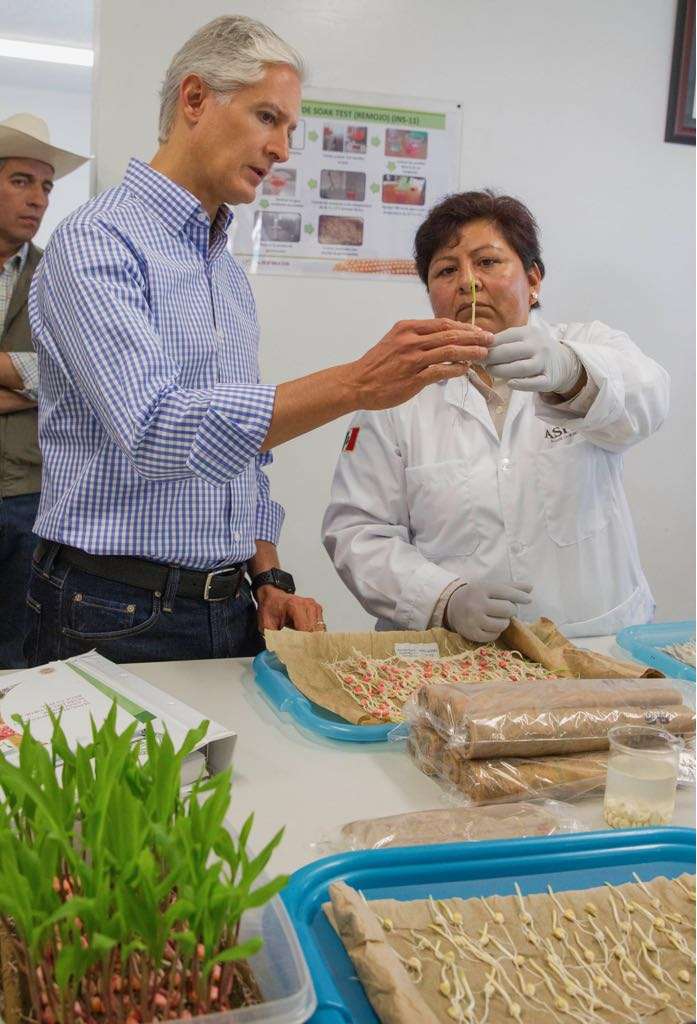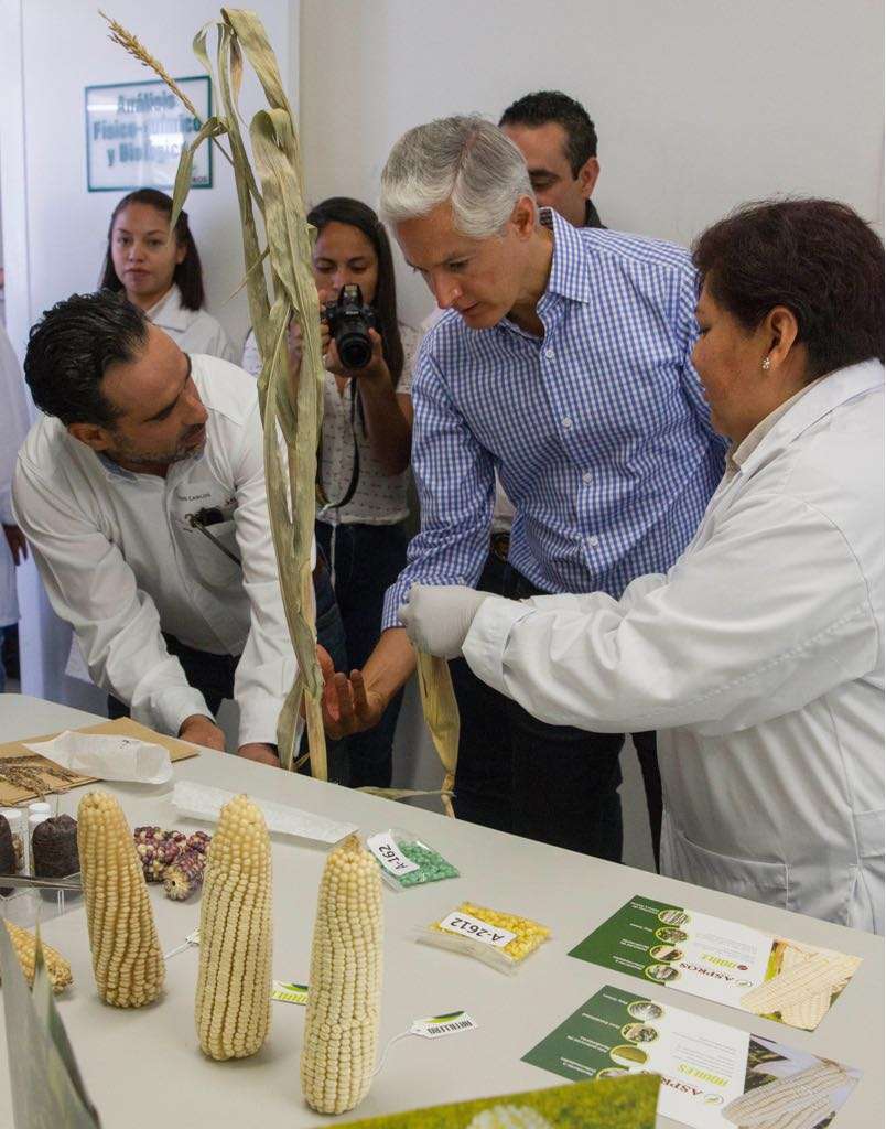 El mandatario mexiquense recorrió también las instalaciones de la empresa Aspros, que se dedica al mejoramiento de la semilla de maíz, para apoyar a los productores mexiquenses.