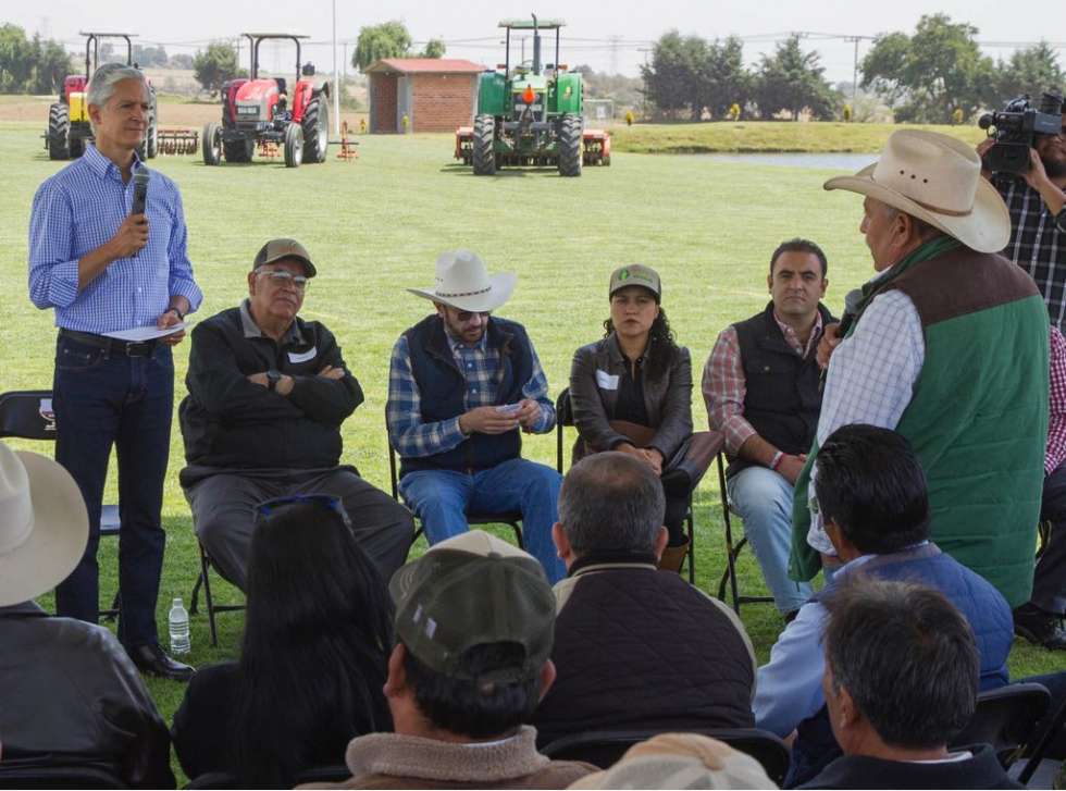 El Gobernador mexiquense se reunió con productores de maíz de Alta productividad de las diferentes regiones de la entidad, donde escuchó sus necesidades y peticiones, para analizar las acciones que se pueden llevar a cabo para tener mejoras en la producción de maíz, así como en materia de comercialización, expansión de tierras para sembrar más hectáreas con este grano, más infraestructura hidráulica, y contar con más centros de acopio y almacenamiento.